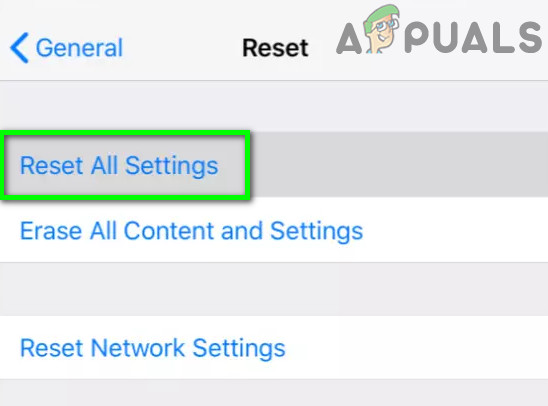 - Now tap on Reset All Settings. Selecting this option will not delete any content from your device but customization like screen brightness, volume, and notification settings will revert to their default Personal data will be unharmed.