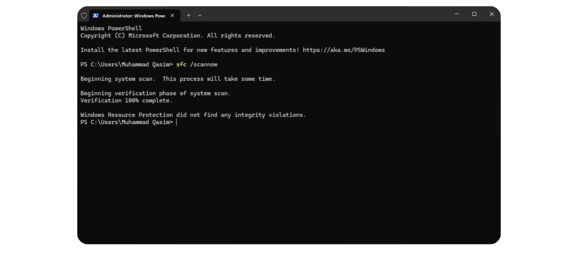 - Once completed, it will notify you of any integrity violations.
