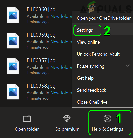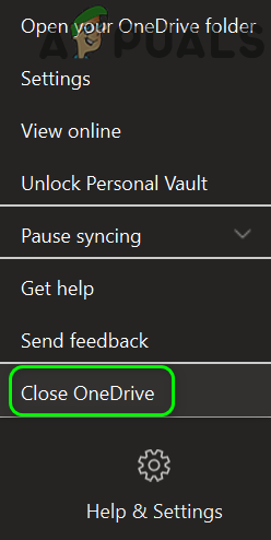 - Right-click on the OneDrive icon in your system’s tray and then click on Help and Settings (near the bottom of the menu shown).