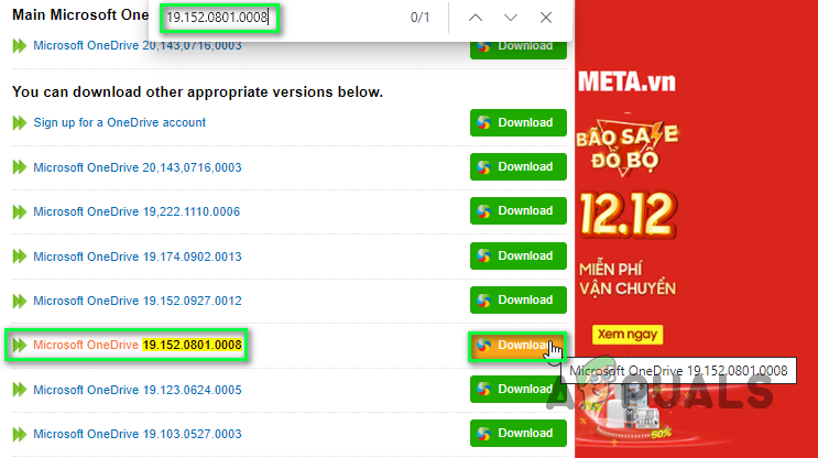 - Navigate to the OneDrive Versions Download webpage developed by META Online Network Corporation.