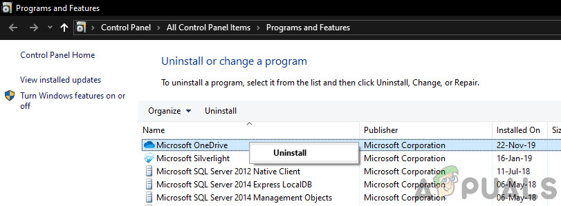 Before we contact Microsoft support, we will try reinstalling the application. There are many instances where the application itself is a corrupt installation because of which the processes are not running properly. The issue you are experiencing might just be a bug in the application or its API. In this solution, we will navigate to the application manager in Windows and uninstall the applications related to Office 365 completely. Then, we will reinstall all of them completely by downloading a fresh copy.