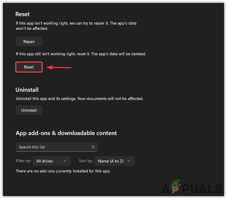 Resetting the Microsoft App can be a good solution to this problem. It lets you clear the cache and appdata that might be corrupted, causing this issue.