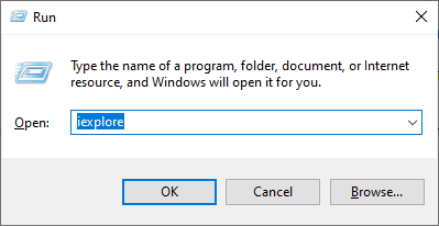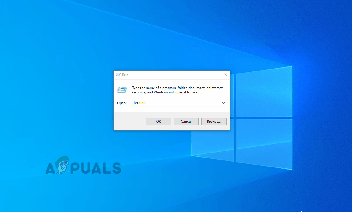 - Open a Run dialogue box by pressing Windows key + R. Next, type ‘ iexplore’ inside the text box and press Enter to open up Internet Explorer. If you are prompted by the UAC (User Account Control), click Yes to grant administrative privileges.