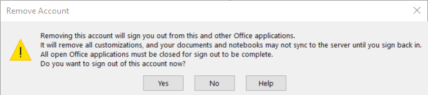 Signing out of OneNote - At the Remove Account prompt, click on Yes to remove your account and sign out of this Office application.