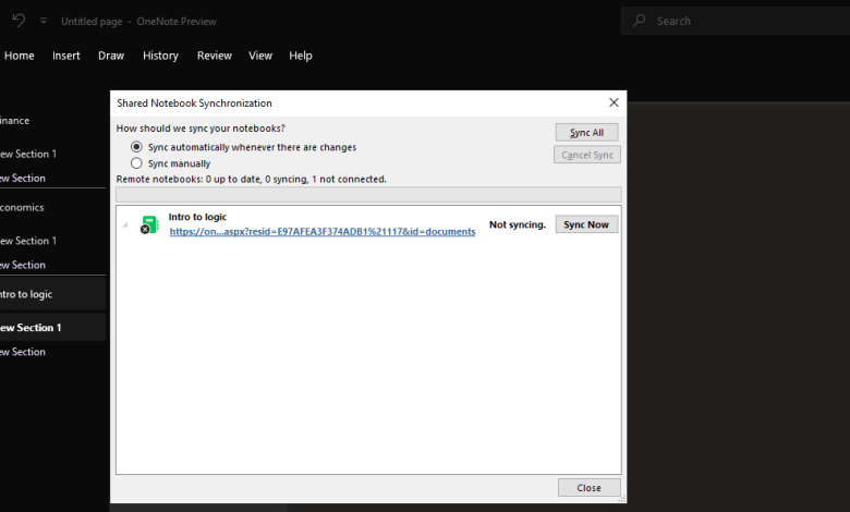 If a particular notebook has run into synchronization issues due to a glitch, then transferring the sections of the old notebook to a newly created notebook could resolve the issue.