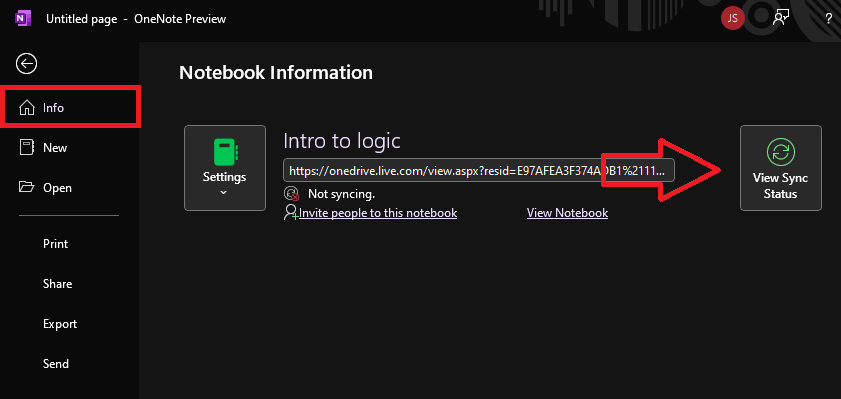 - Click on the Info button in the sidebar, then select the View Sync Status button from the right pane.