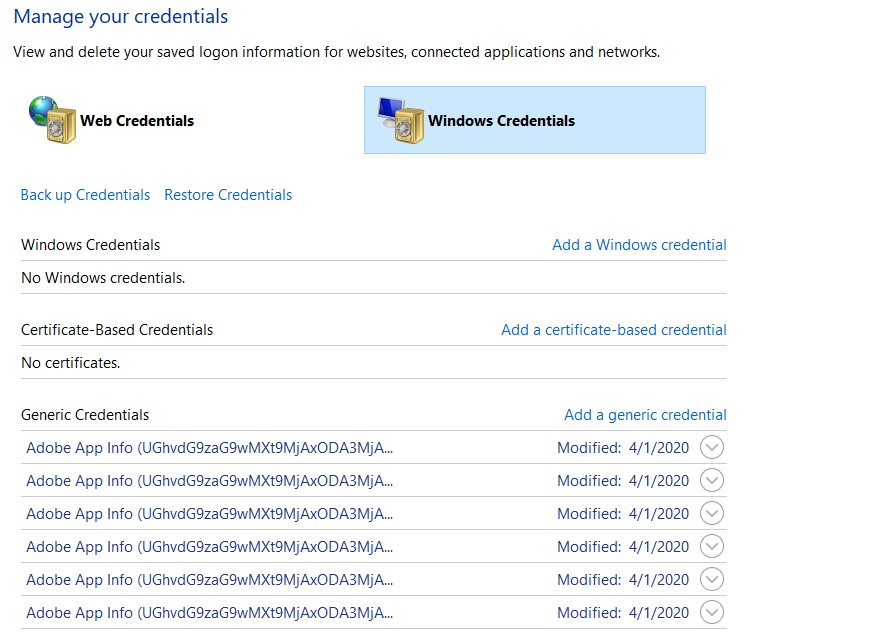 Open Control Panel - Go to Control Panel -> User Accounts -> Credential Manager -> Windows Credentials.