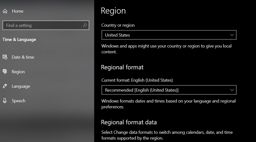 Time and Language - Then go to Region & Language. Check if your preferred language is selected.