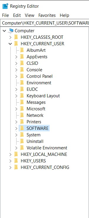 regedit.exe - Go to HKEY_CURRENT_USER and then Software.