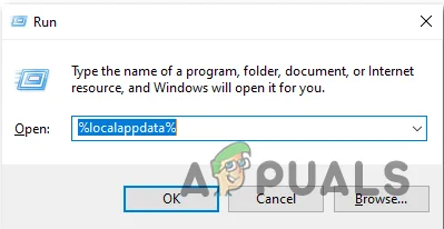 - Type %localappdata% in the Run utility text box and press Enter.