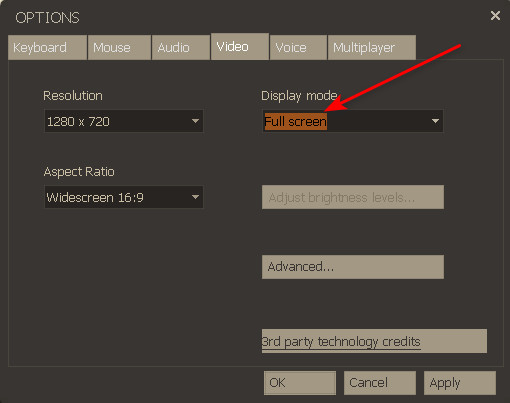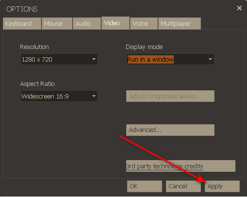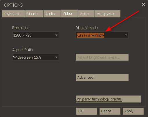 - To run the game in windowed mode, change these settings as follows: