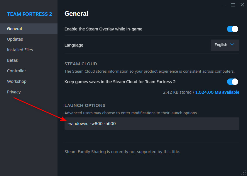 If your game doesn’t support windowed mode directly through its in-game settings, you can use Steam’s launch options to force it into windowed mode.