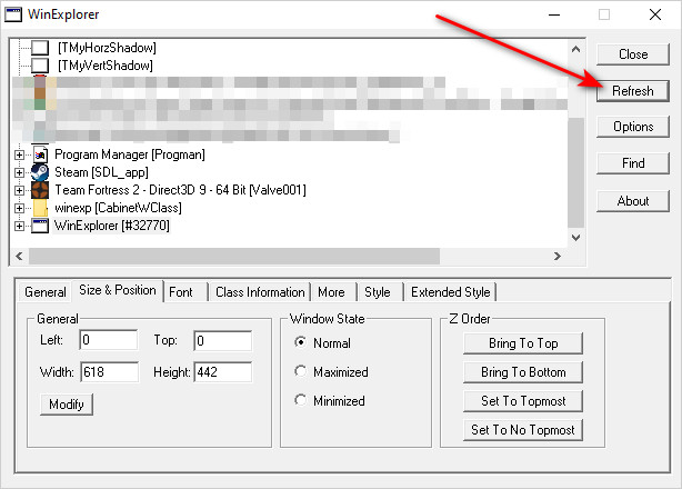 - Switch back to the Winexp application and click on the “Refresh” button.
