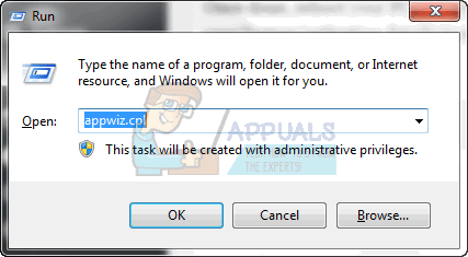 Hold the Windows key and press R. Type ‘appwiz.cpl‘ and click ‘OK‘.