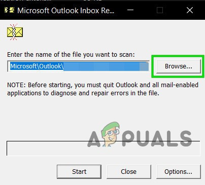 Run ScanPST as Administrator - Press the Browse button in Microsoft Outlook Inbox Repair.