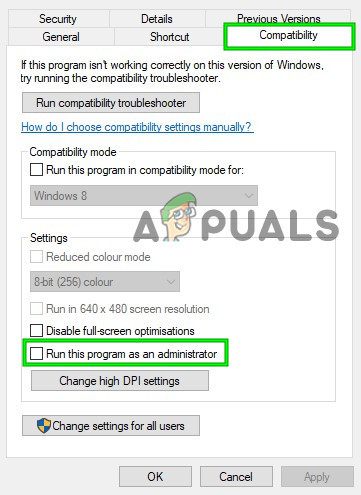 - Uncheck the Run this program in compatibility mode setting (if selected).