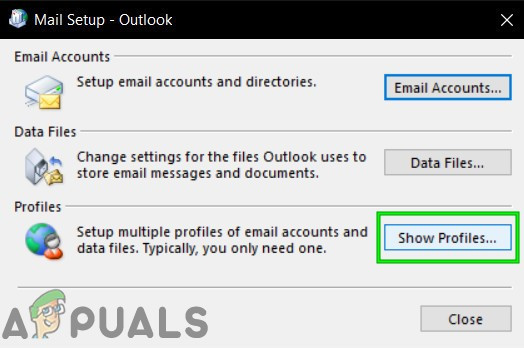 Open Mail in Control Panel - Now click on the Show Profiles button.