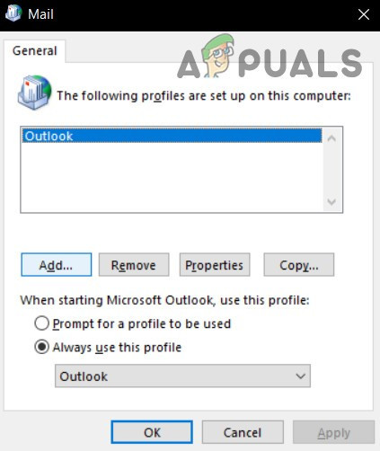 Click Add in Mail Setup - Enter a profile title in the text box, and click the OK