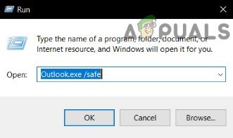 - Type Outlook.exe /safe, and click OK. (There is a space after Outlook and the /)