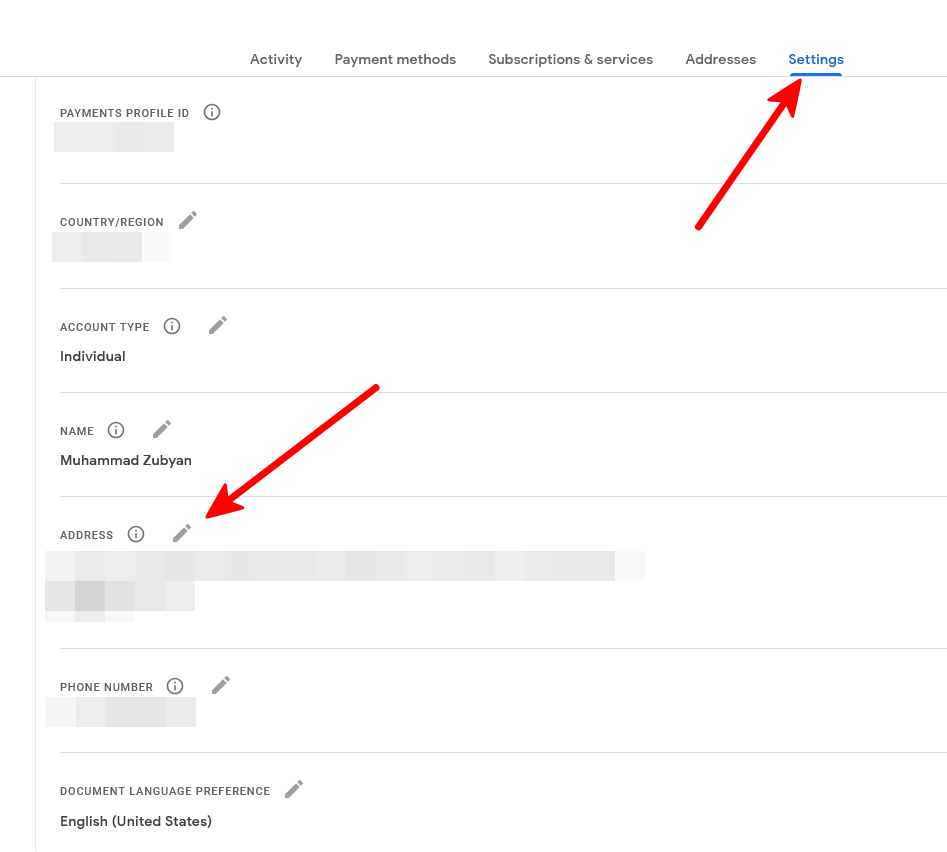 - Visit payments.google.com, go to Settings, and scroll to the Payment Profiles section.