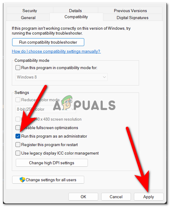 Forcing your game to always launch with administrator privileges - After you have done that, click on Apply to save the changes.
