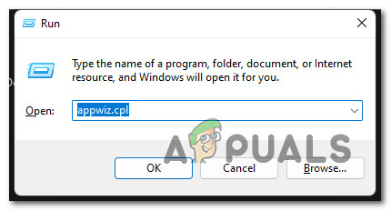 - Press Windows key + R to open up a Run dialog box. Next, type ‘appwiz.cpl’ and press Enter to open up the Programs and Features menu.