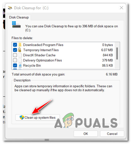 - Press Windows key + R to open up a Run dialog box. Next, type ‘cleanmgr’ inside the text box and press Enter to open up the Disk Cleanup utility.