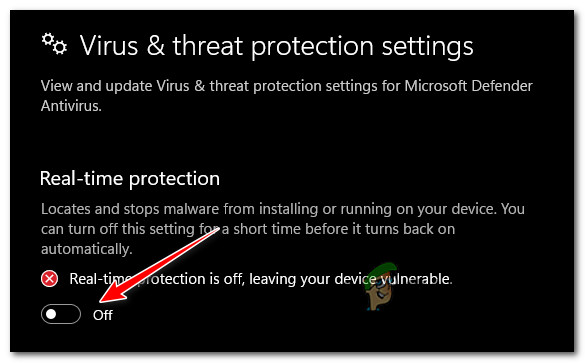 Open up the Virus & Threat Protection settings - Once you’re inside the custom Virus & threat protection settings, scroll down to the Real-time protection settings and switch the toggle to OFF.