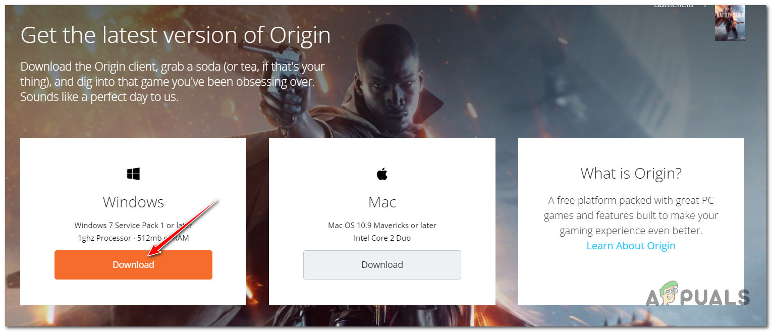 - Open your default browser and download the latest version of the Origin non-thin client installer from the official download page.