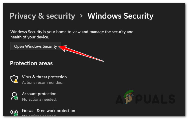 Opening up Windows Security - Once you’re inside the Windows Security tab, move over to the right-hand section and click on Open Windows Security.