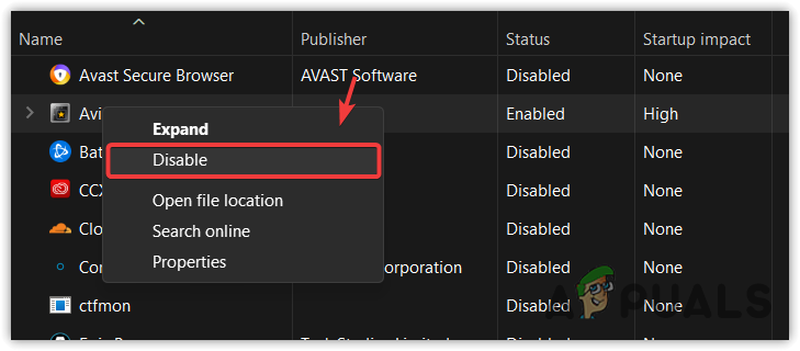 - Here, you will see all the apps that run with Windows. Right-click the unnecessary applications one by one, and click Disable.