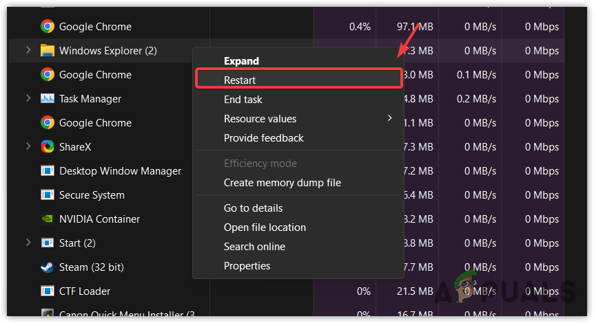 - Once the Windows Explorer has restarted, launch the application and see if the error persists.