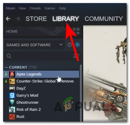 - Open the Steam application and click on Library to visit the library where you have all the games, then locate Apex Legends.