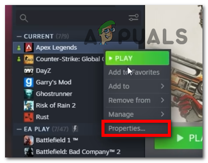 Access the Library menu - Now right-click on the game and click on Properties to open the options menu of the game.