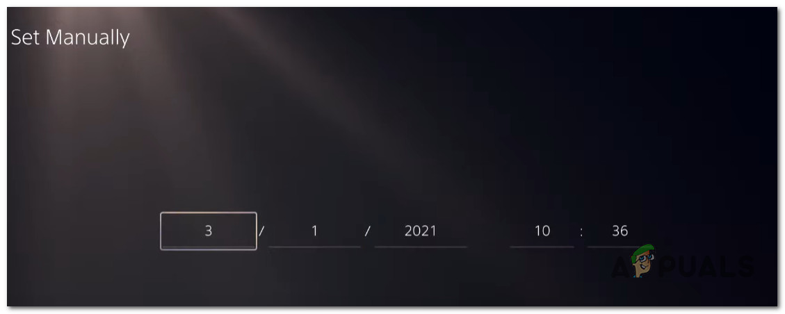 Setting the Date and Time menu on PS5 - From the next Set Date and Time menu, choose Set Manually.