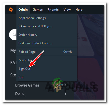 - Next, click on Sign out from the Origin context menu that just appeared.