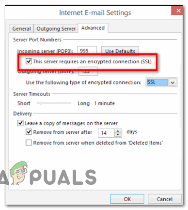 As it turns out, there are two main causes why this particular Outlook error will occur. The first potential culprit is an inconsistency that appeared after Yahoo upped their security settings for POP. If you have configured your email account prior to this change, you should be able to fix the problem by modifying the security options for POP3 in order to make Outlook aware that Yahoo requires an encrypted connection (SSL).