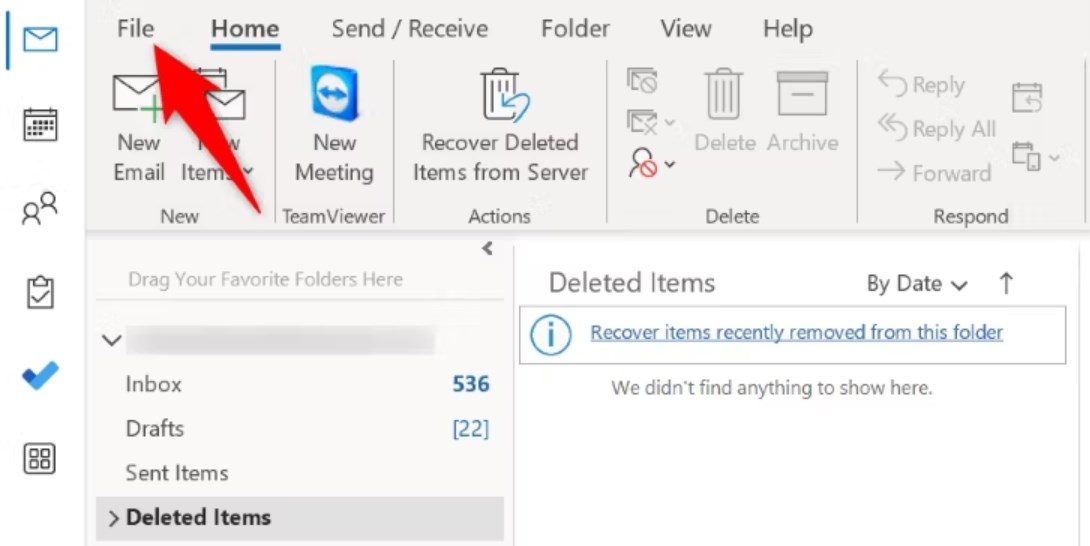- Click “File” in the top-left corner of your Outlook app.