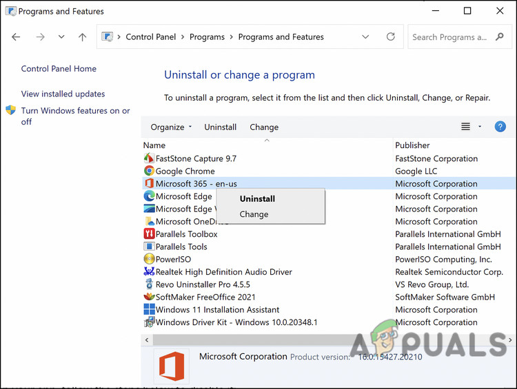 - Your screen should now display a list of installed programs. Locate Office 365 and right-click on it.