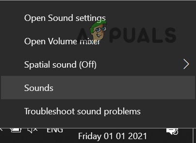 - Right-click on Speaker icon on taskbar and click on Sounds.