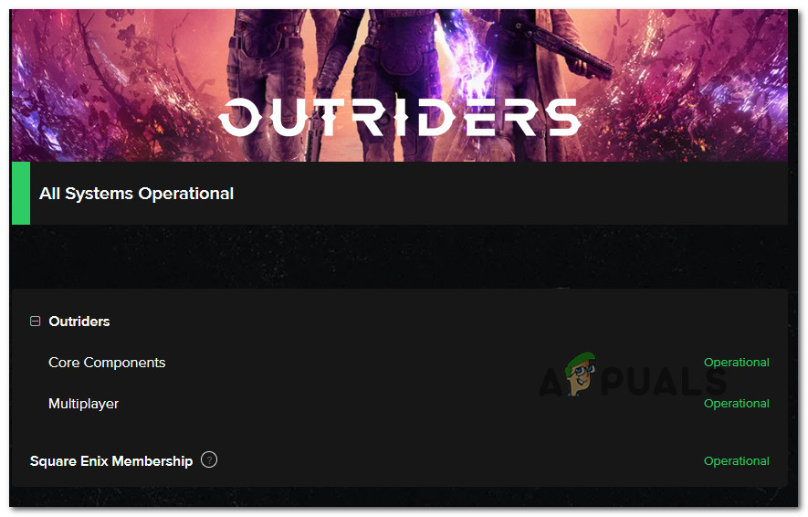 Once you’re inside, expand the drop-down menus of both Outriders and Square Enix Membership and check if there’s any kind of issue currently reported.