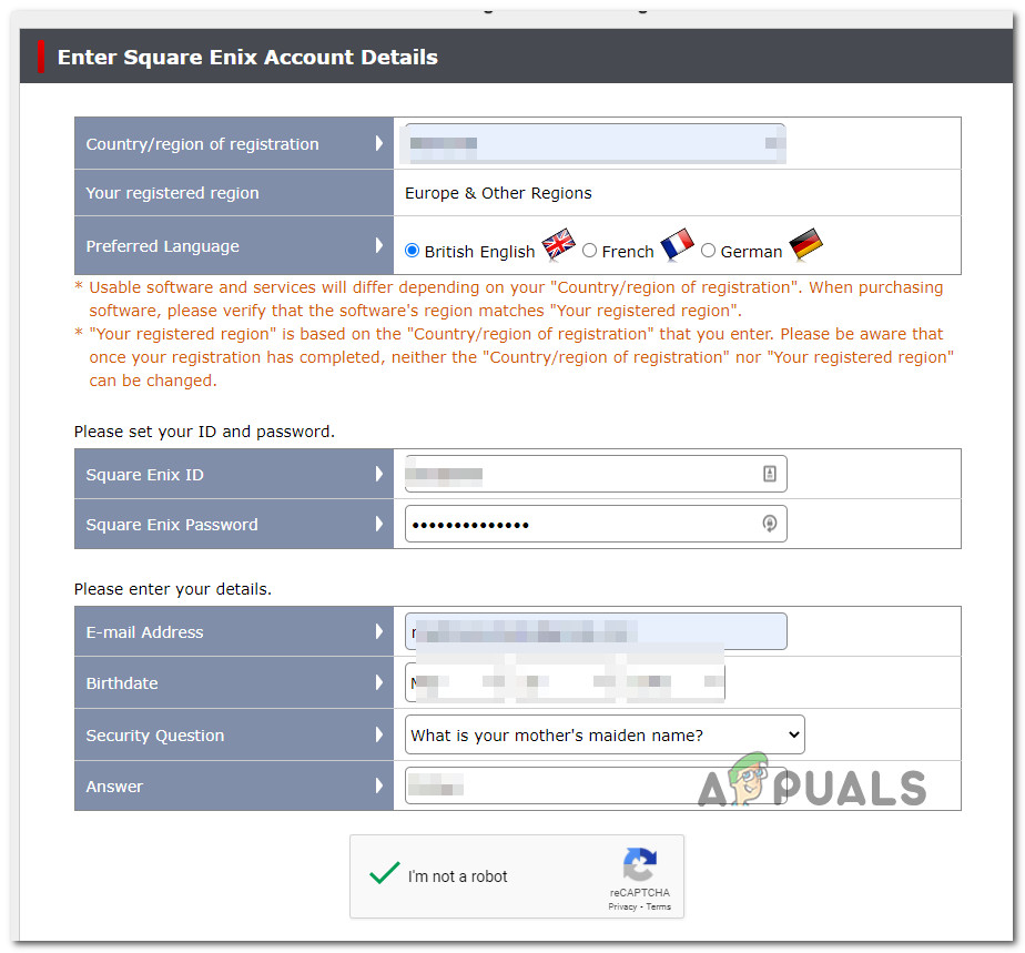 Register for a Square Enix account Note: If you already have a Square Enix account, skip the next steps and move directly to step 7.
