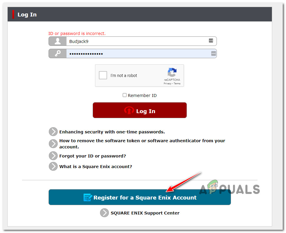 - Once you’re inside the platform, sign in with your user credentials if you already have an account. If you don’t click on Register for a Square Enix Account.
