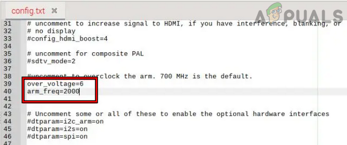 5. In the case, you want to use the Medium Overclocking (for a Pi 4 with a moderate cooling system), add the following lines to the configuration file: