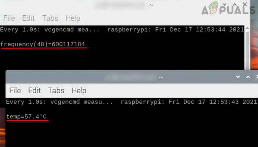 2. Now, in the other Terminal window, execute the following to measure the Temperature of the Pi 4: