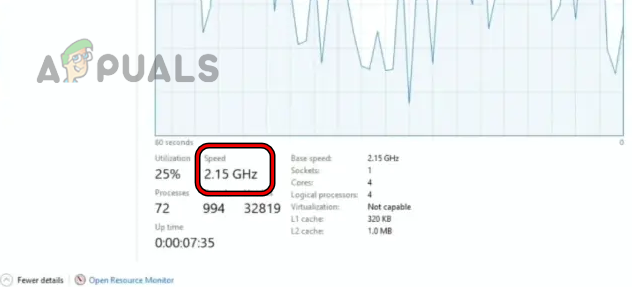 Check Speed of the Pi 4 in the Performance Tab of the Pi 4’s Windows