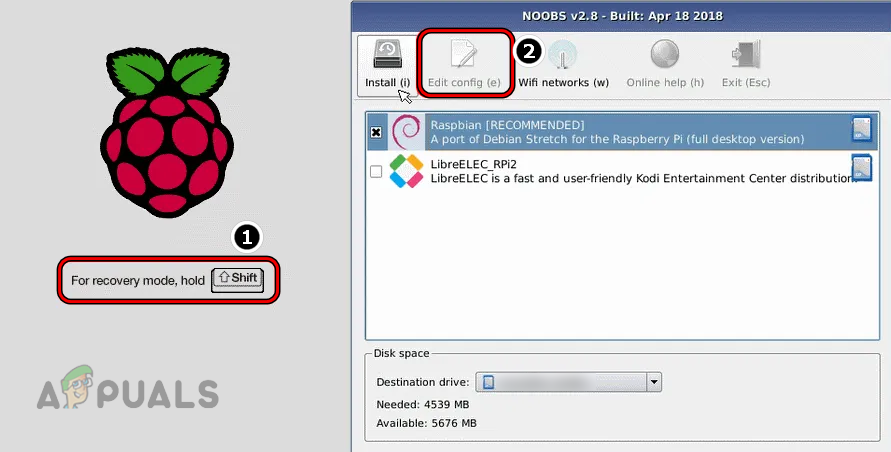 Boot the Raspberry Pi 4 into the Recovery Mode and Click on Edit Config