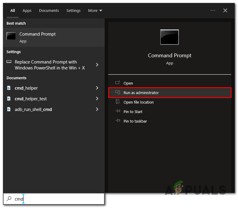 - Type CMD in the search box and run it as an administrator.