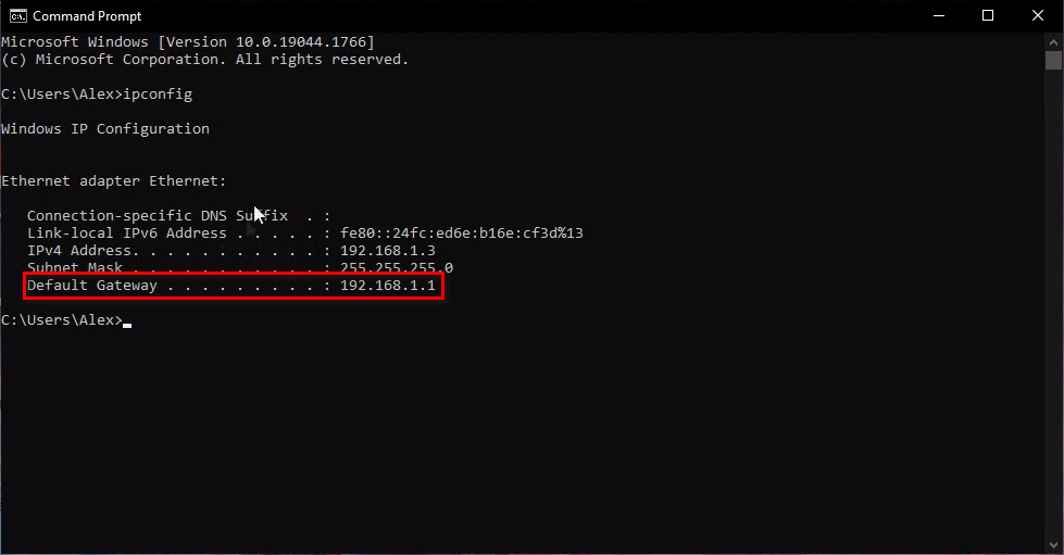 opening ipconfig in cmd - Copy the IP address in the Default Gateway box.