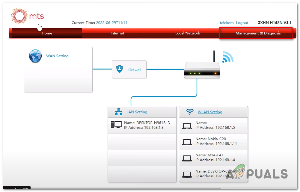 - Click on Management & Diagnosis.